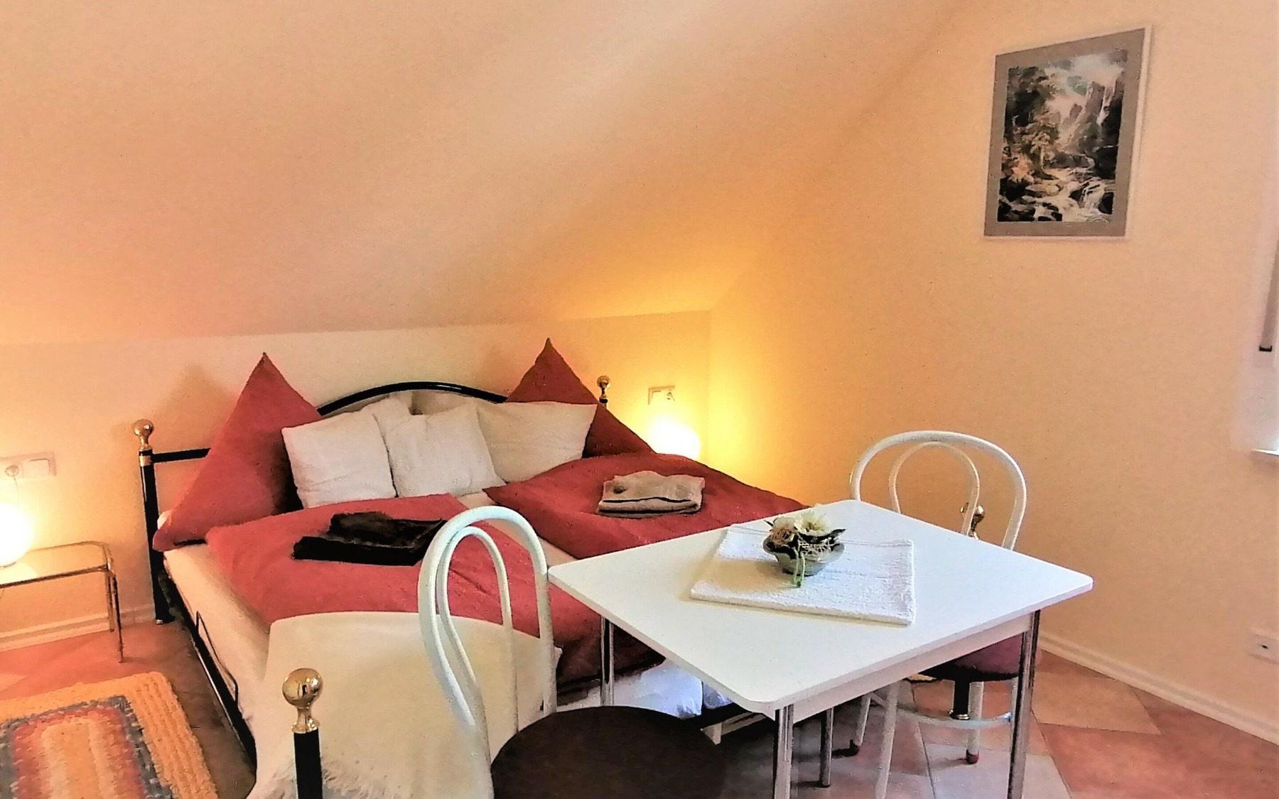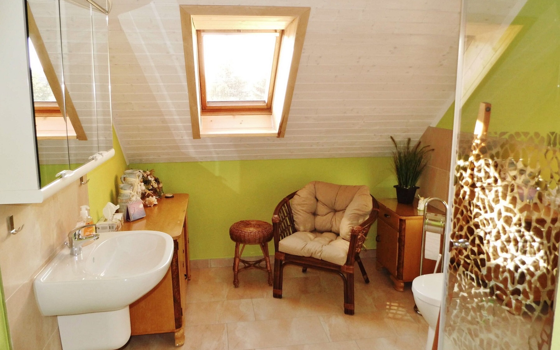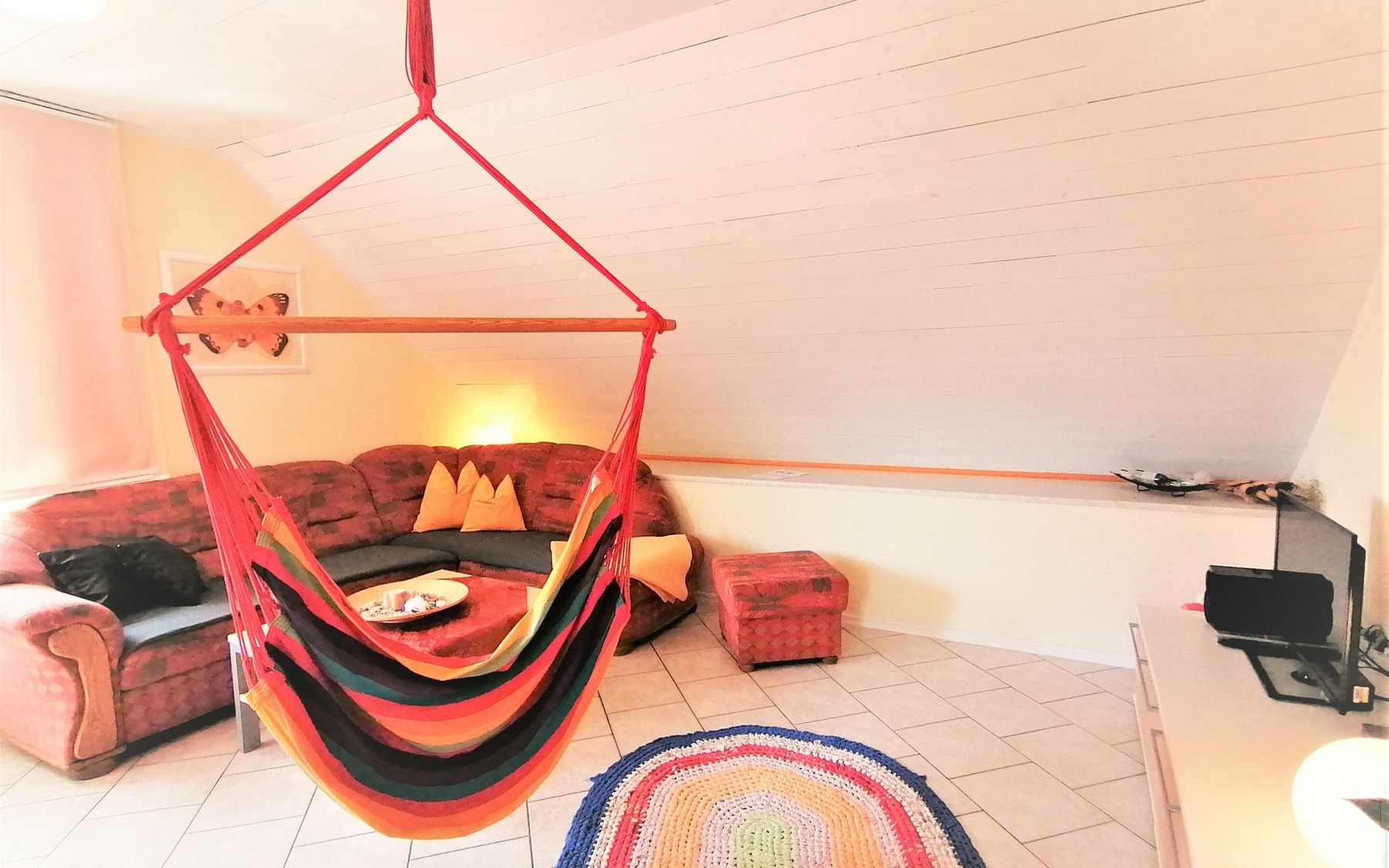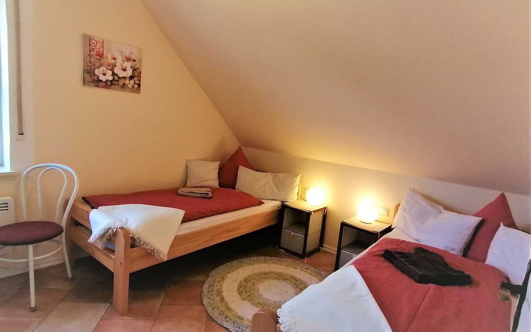 Die Ferienwohnung liegt in der Gemeinde Boxberg/O.L. nahe des Biosphärenreservats Oberlausitzer Heide- und Teichlandschaft und dem Landschaftspark Bärwalder See. Sie befindet sich im Dachgeschoss eines Zweifamilienhauses und verfügt über ein Wohnzimmer mit TV, zwei Schlafzimmer, ein Bad mit Dusche und eine komplett ausgestattete Küche. Die Einrichtung ist mit hellen Holztönen, dezenten Wandfarben und liebevollen Details sehr gemütlich.