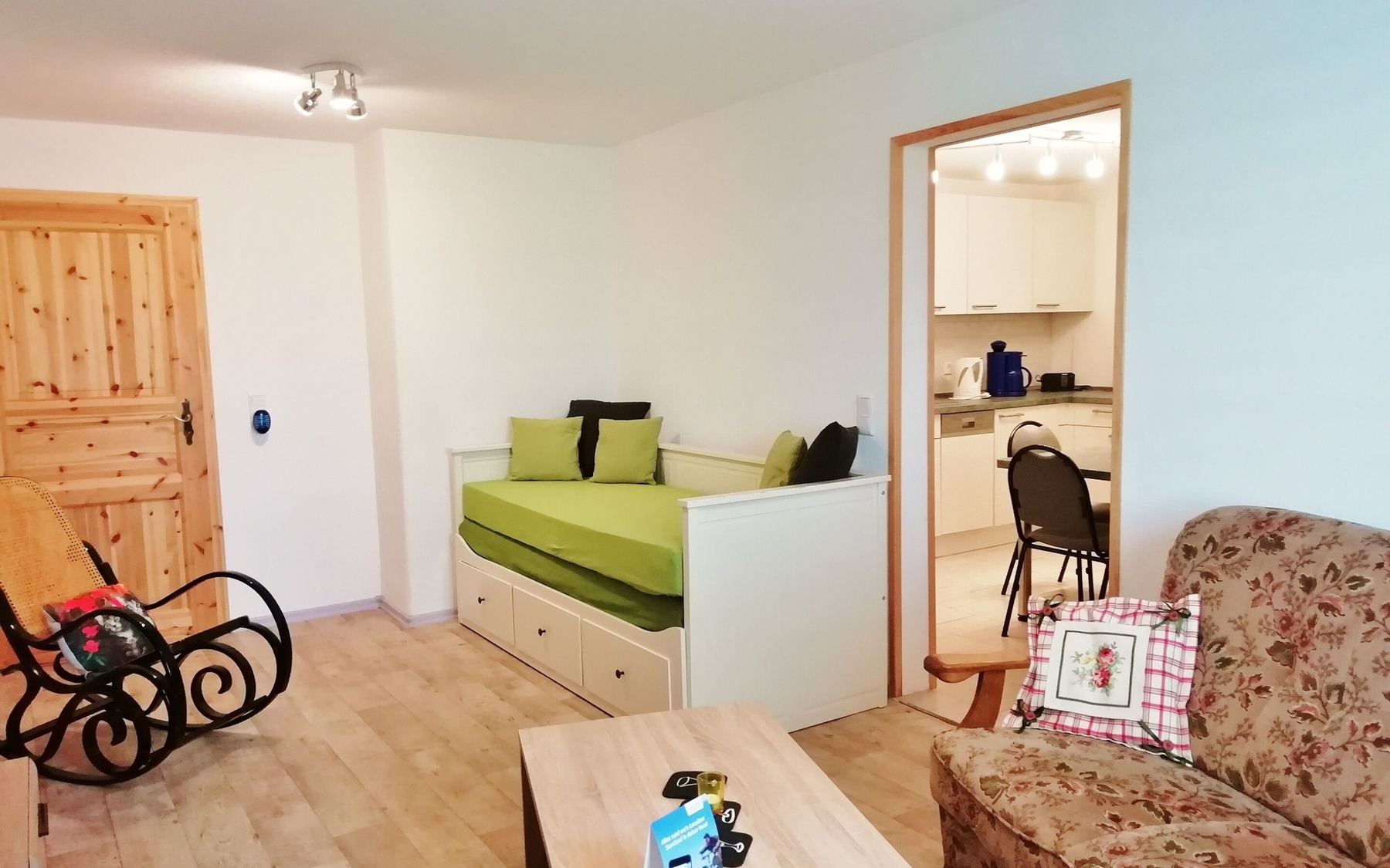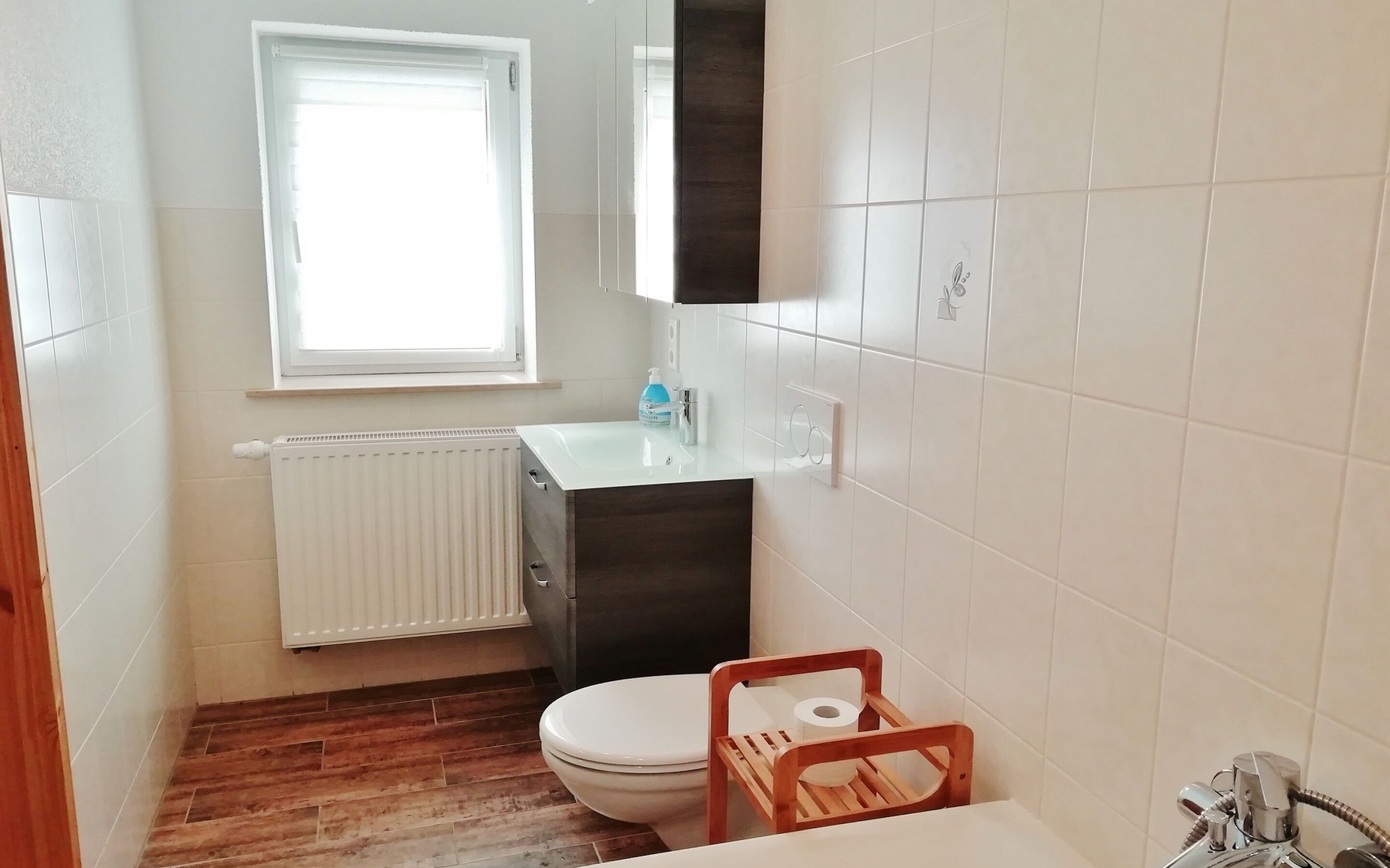 Die 55 m² große Ferienwohnung ist modern und liebevoll eingerichtet. Das Wohnzimmer ist mit Flat-TV, Sat-Anlage und Musikanlage ausgestattet und im Schlafzimmer finden Gäste ein Doppelbett (1,40 m) sowie einen Kleiderschrank. In der vollausgestatteten Küche finden sie Backofen, Induktionsfeld, Geschirrspüler, Wasserkocher, Kaffeemaschine, Toaster und weitere Annehmlichkeiten. Das moderne Badezimmer ist mit einer Badewanne ausgestattet.