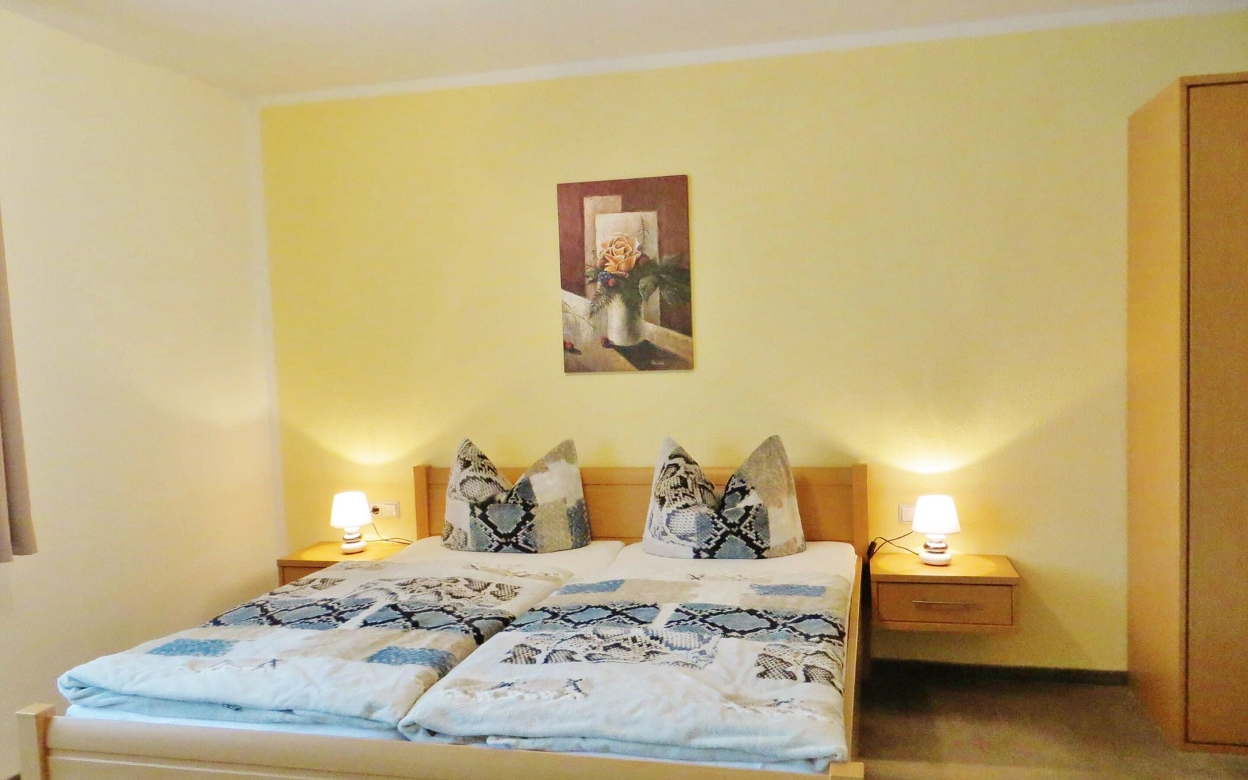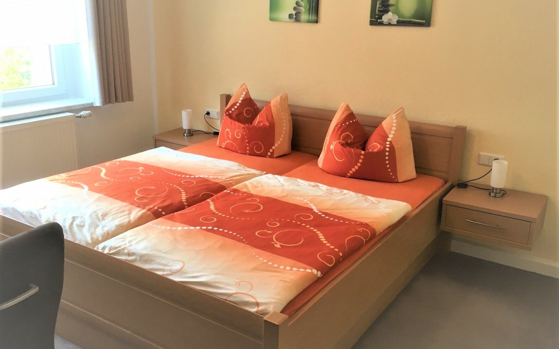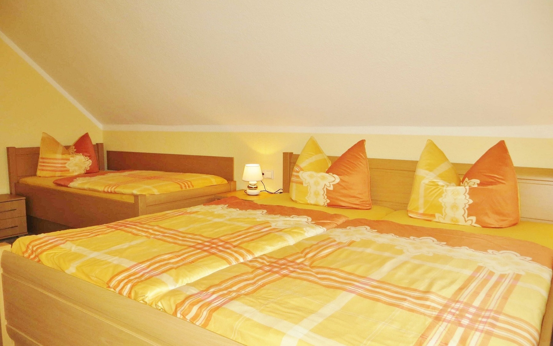 Ferienwohnung 2: Schlafzimmer mit Doppelbett und einem Einzelbett, Foto: Ulrike Haselbauer, Lizenz: Foto Touristinformation Hoyerswerda