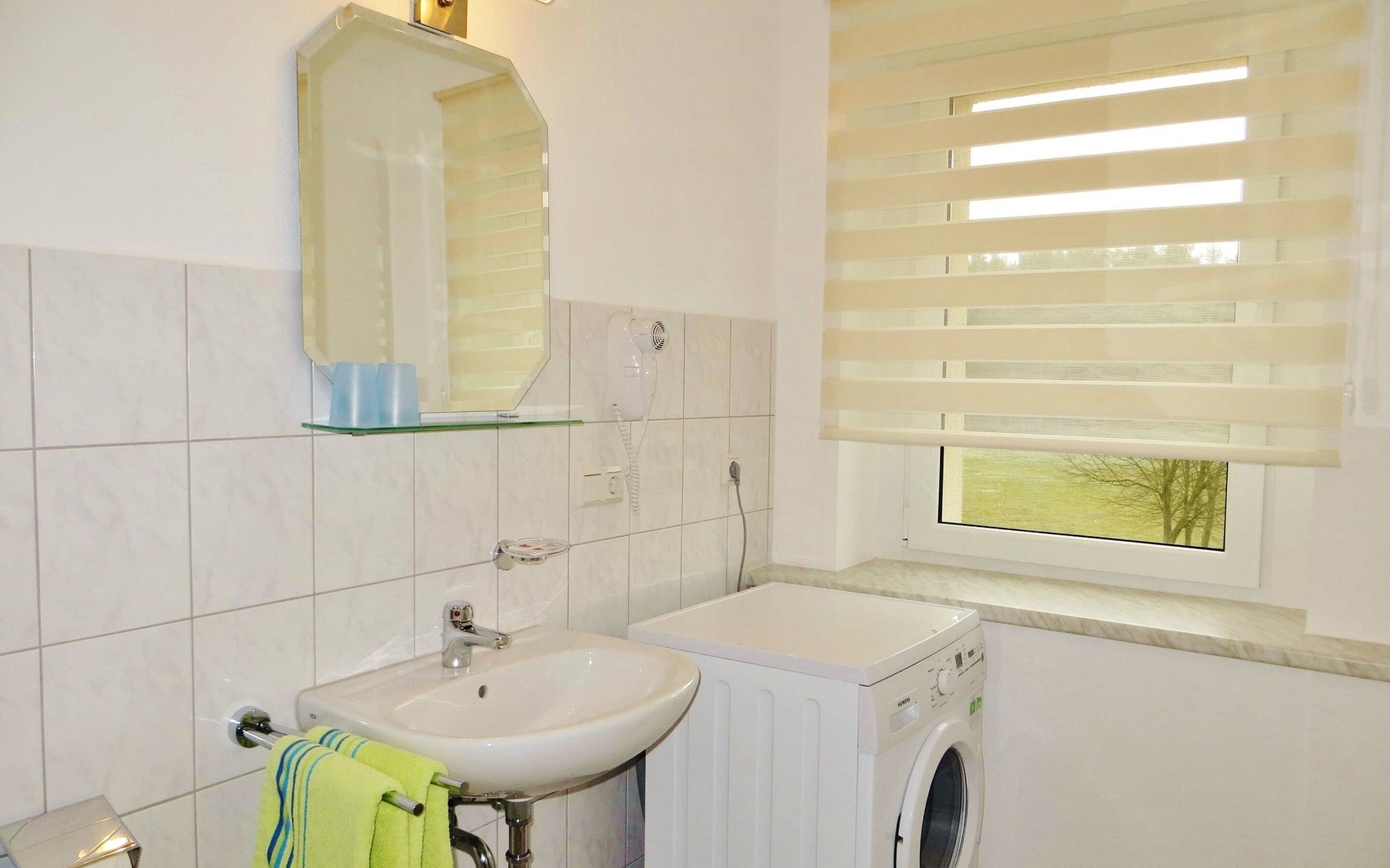 Ferienwohnung 1: Bad mit Dusche, WC und Waschmaschine, Foto: Ulrike Haselbauer, Lizenz: Foto Touristinformation Hoyerswerda