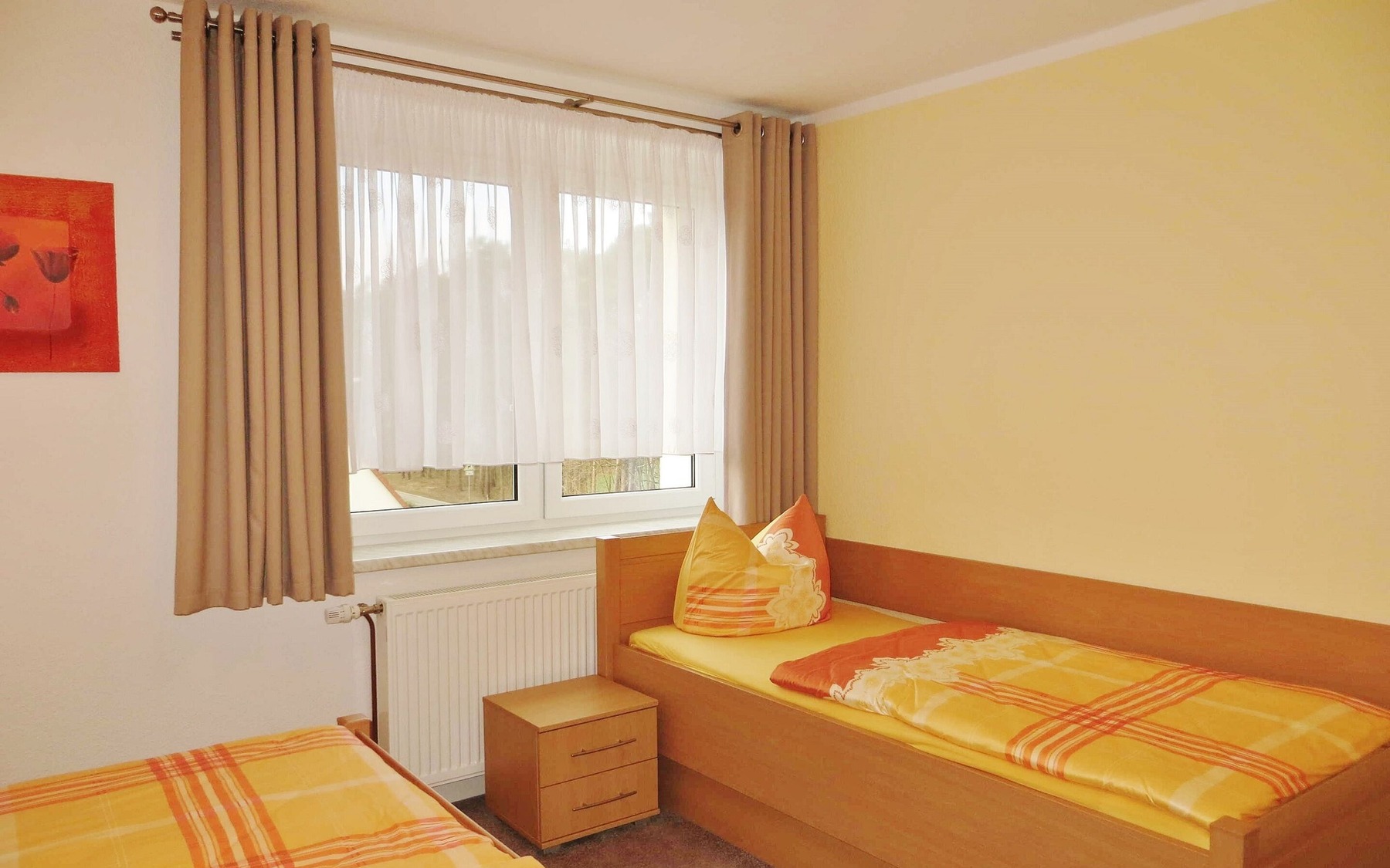 Ferienwohnung 2: Schlaf mit Blick auf das zweite Einzelbett, Foto: Ulrike Haselbauer, Lizenz: Foto Touristinformation Hoyerswerda