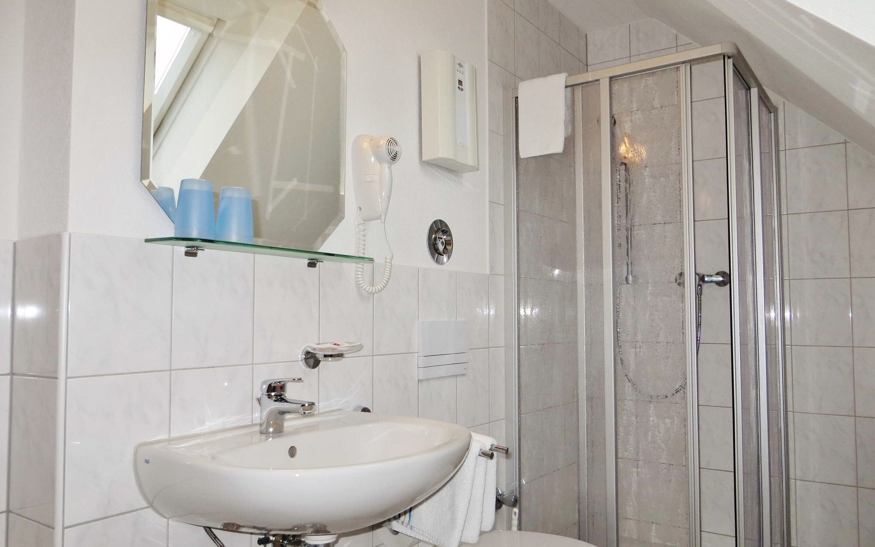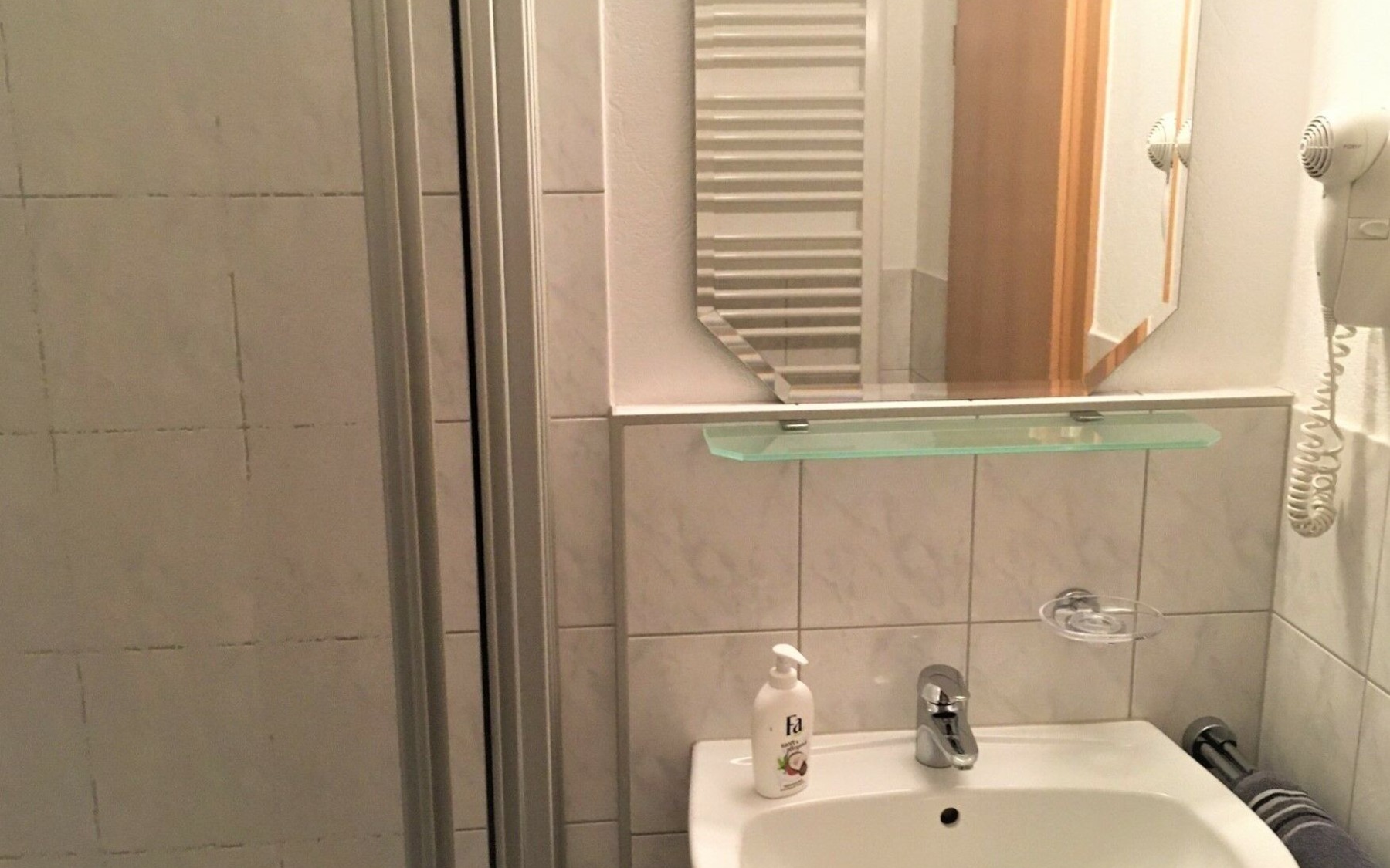 Heideland Gaststätte & Pension Beispiel für ein Bad mit Dusche , Foto: Heribert Mocha, Lizenz: Foto: Heideland Gaststätte & Pension