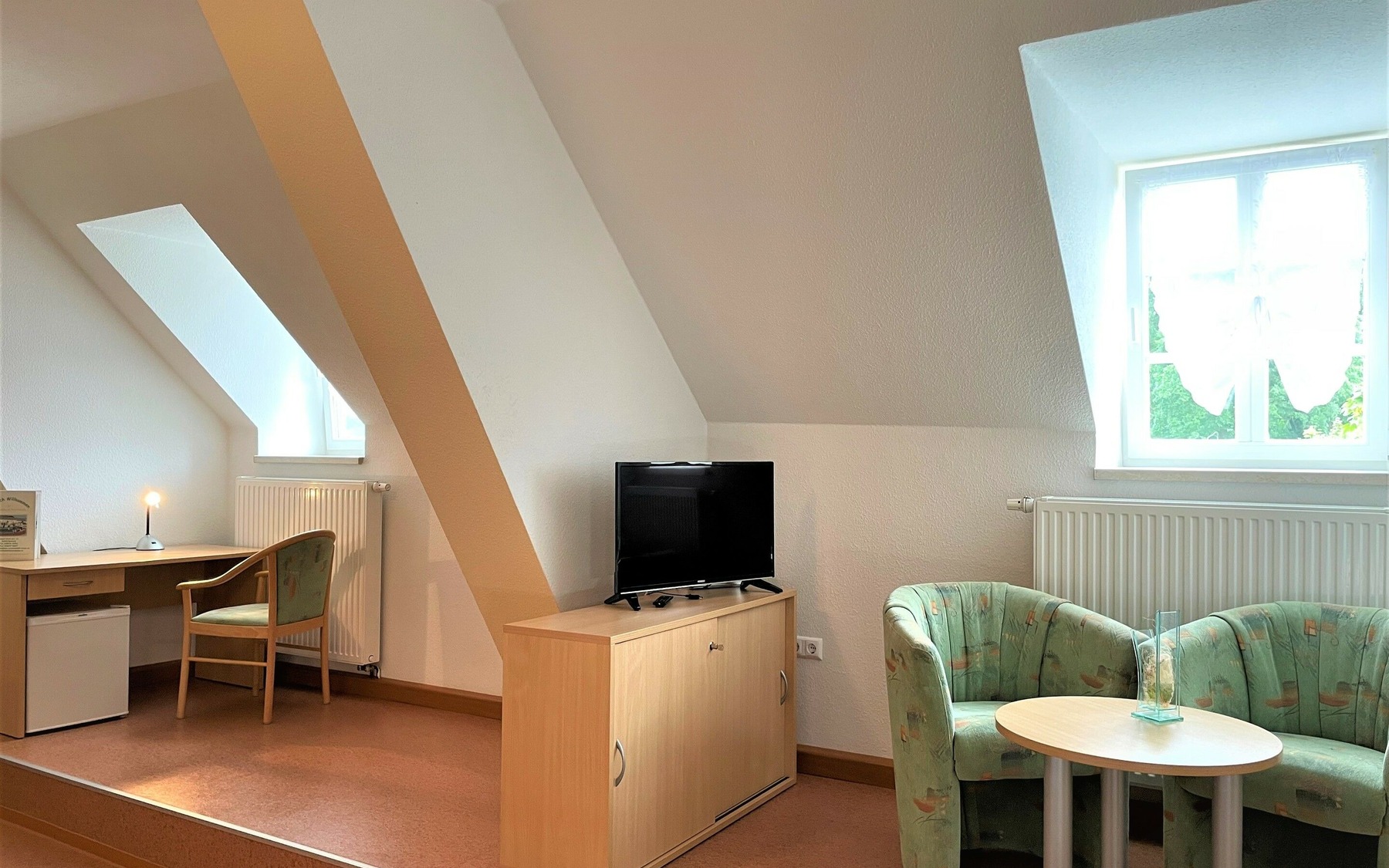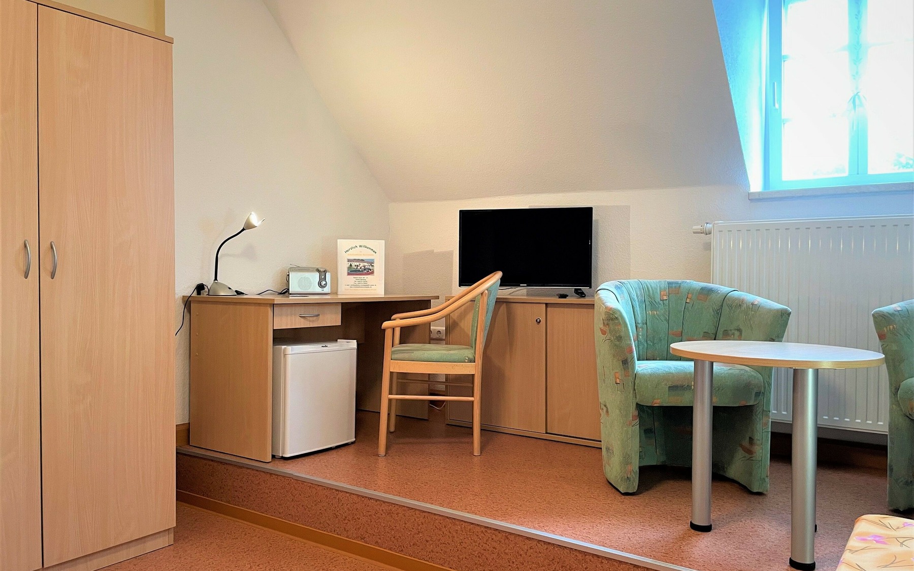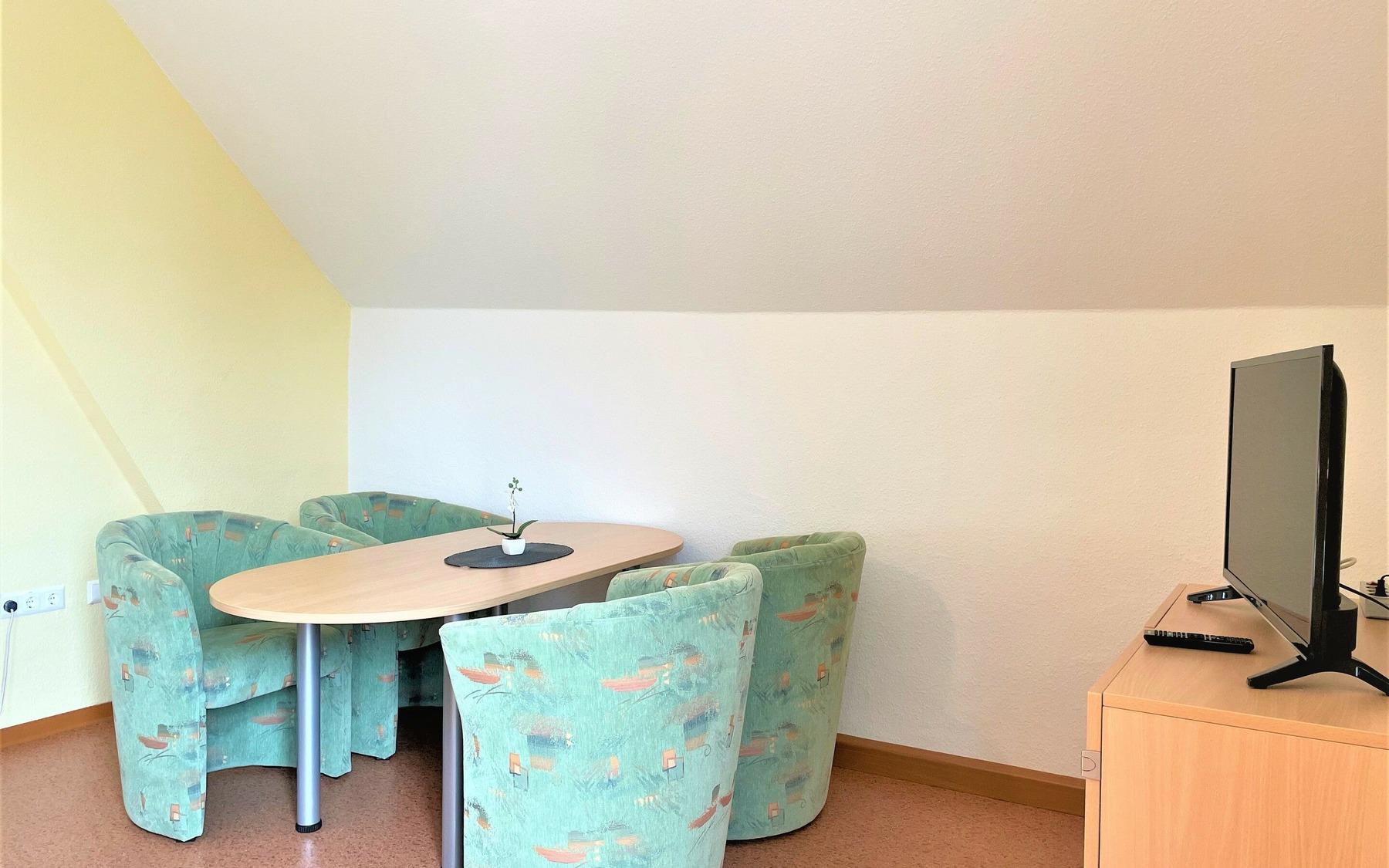 Zimmer Nr. 30 Sitzpruppe und Fernseher, Foto: Ulrike Haselbauer, Lizenz: TV Lausitzer Seenland.e.V.