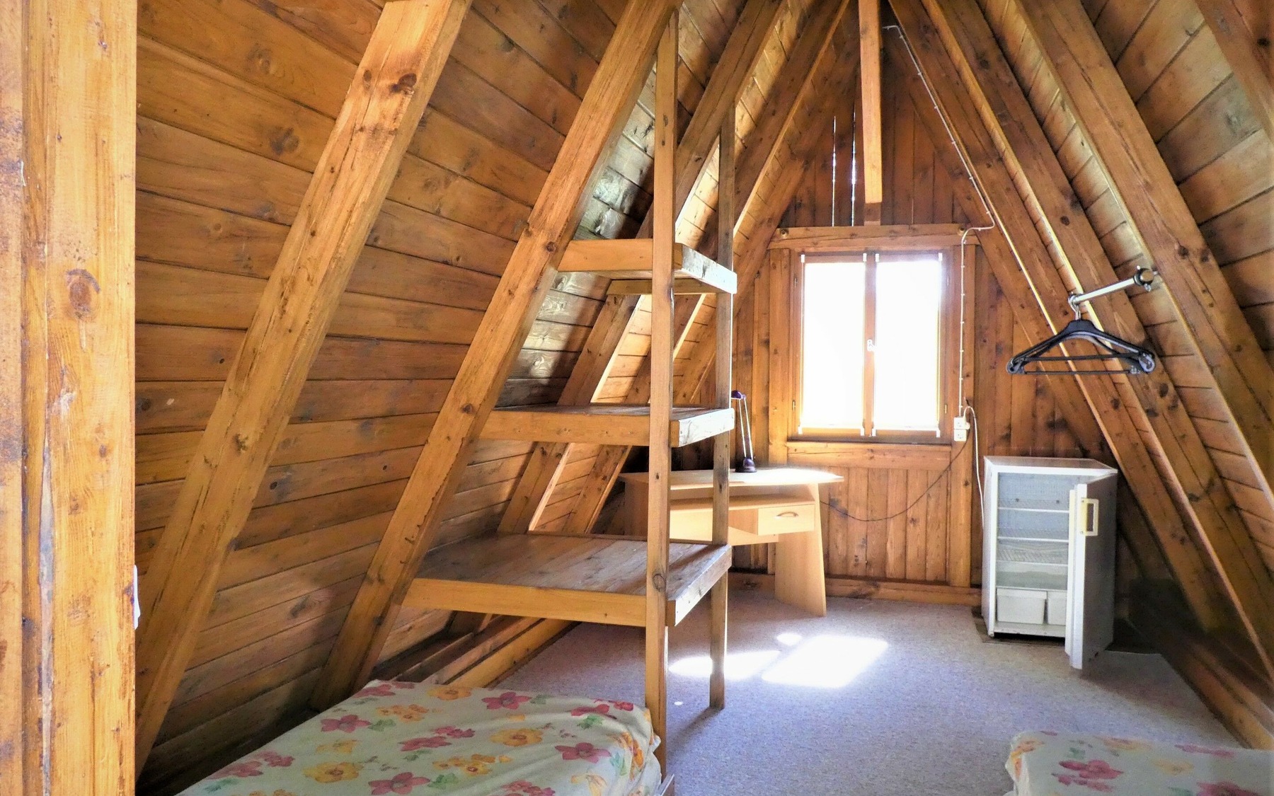 Im Obergeschoss, sowie im 1. Stock befinden sich die Unterkünfte für Schulklassen. Das Dachgeschoss verfügt über 5 Ferienzimmer mit Dusche und WC. Im 6. Ferienzimmer nutzen die Gäste für ihren Aufenthalt eine separate Toilette auf dem Flur und die Dusche befindet sich im Gebäude.
