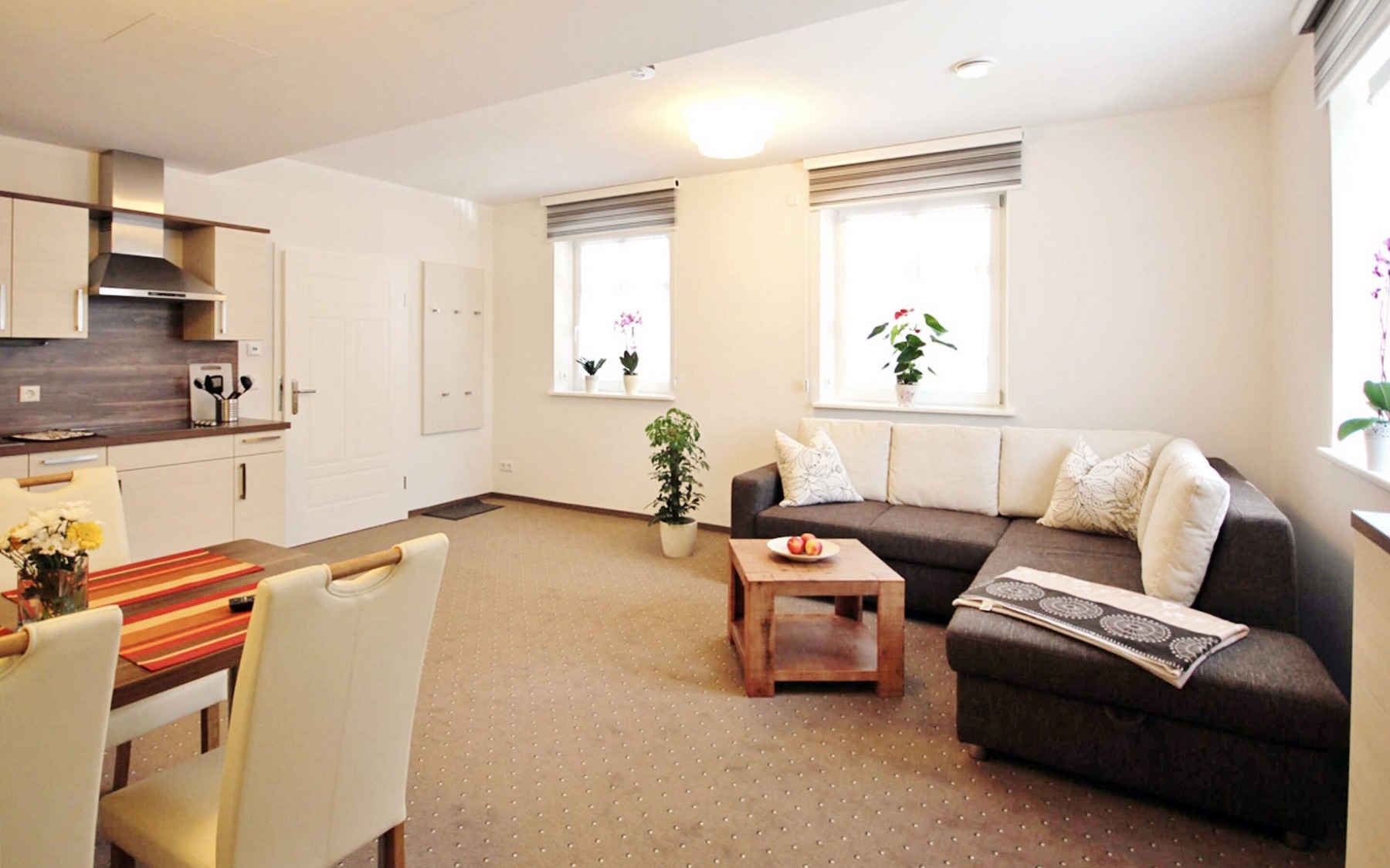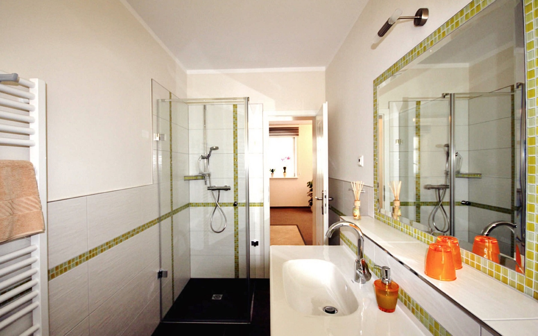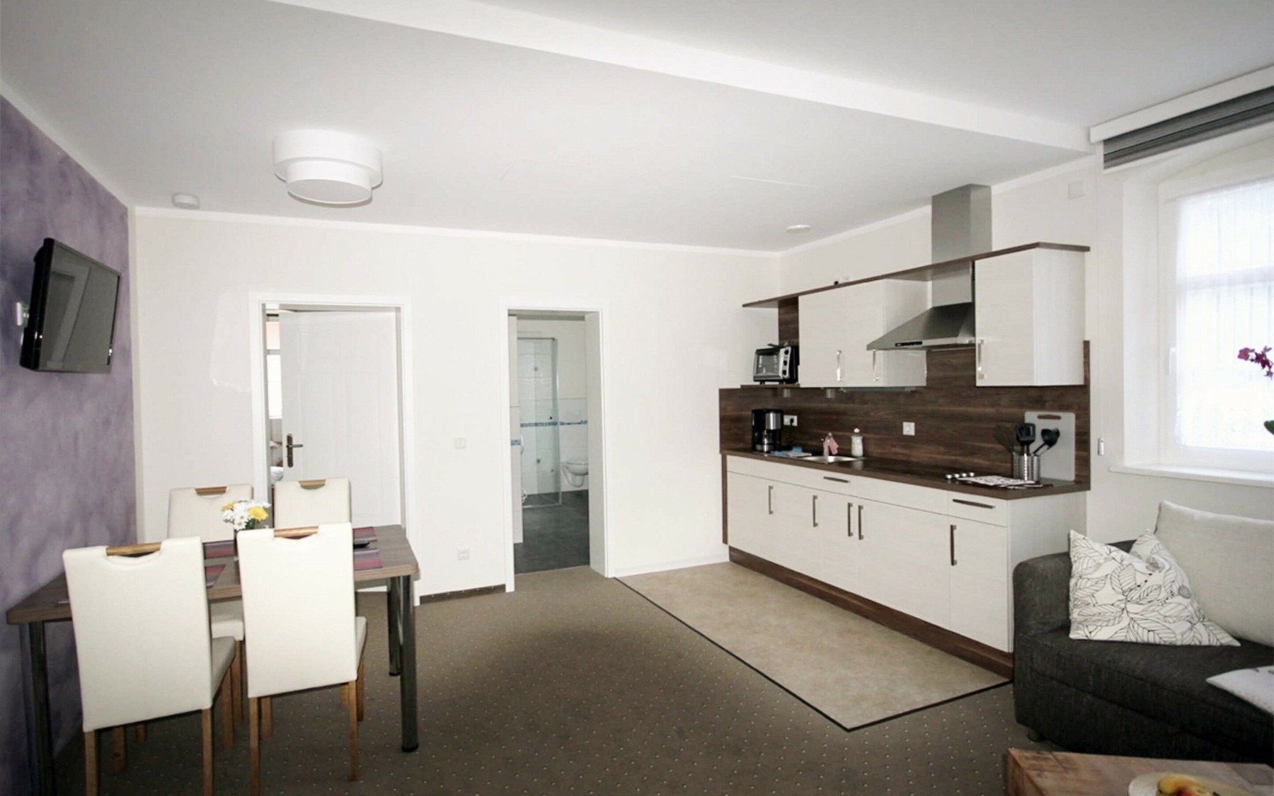 Die 4 Ferienwohnungen befinden sich in einem restaurierten Gebäude aus dem Jahr 1860 inmitten der Natur mit Blick auf das Uhyster Schloss und den angrenzenden Schlosspark. Diese Wohnungen bieten auf 45m² jeweils Platz für maximal 4 Personen und verfügen über einen kombinierten Wohn- und Essbereich mit TV, Schlafcouch und integrierter Küchenzeile, ein Schlafzimmer sowie ein Bad mit Dusche. Die Einrichtung der Wohnungen ist modern und mit ansprechenden Farbakzenten und liebevollen Details gestaltet.