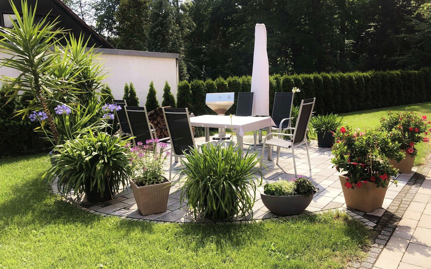 Im Außenbereich stehen Gästen eine Sitzecke mit Grill sowie Parkplätze zur Verfügung. Fahrräder können in der Garage eingeschlossen werden. Der Bärwalder See mit seinen Bade-, Freizeit- und Wassersportmöglichkeiten ist nur circa 900 Meter entfernt.